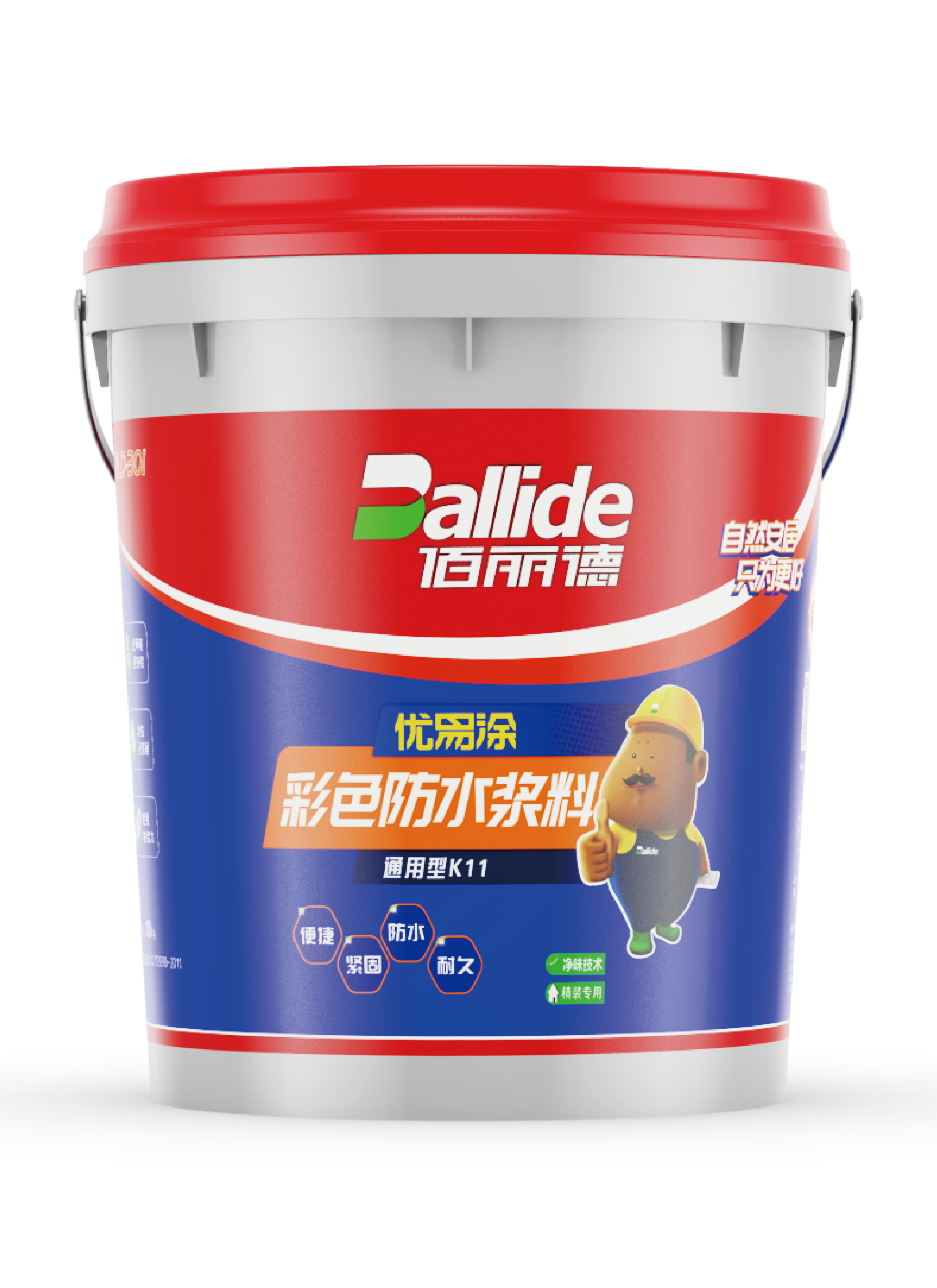 彩色防水漿料(K11通用型)是專門為家居廚衛(wèi)裝修設(shè)計(jì)的高效防水材料。粉料是由優(yōu)質(zhì)水泥、精選級配石英砂及獨(dú)特高分子聚合物組成;添加劑是高效的聚合物乳液。攪拌后涂刷在水泥基底材上,與底材形成一體并生成不被水滲透的枝蔓狀結(jié)晶體,從而達(dá)到優(yōu)異的防水效果。