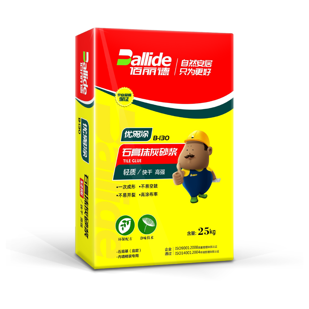 參考用量:1噸石膏抹灰砂漿加水攪拌后的體積為1.3立方米(±5%偏差),不包括損耗和墻面不平整引起的誤差。